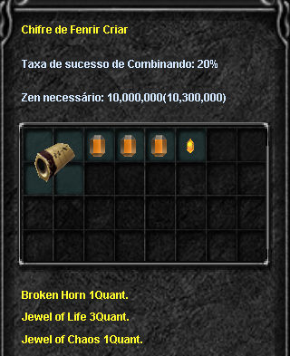 O Horn of Fenrir é o item resultante da segunda e última etapa do processo de criação do poderoso pet Fenrir. Representa o esforço combinado de recursos raros e dedicação — recompensando o jogador com uma montaria única, resistente e ofensiva, usada por todas as classes.